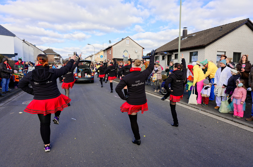 Endspurt und Finale der Session 2025/2026 beim Rosenmontagszug am 16.02.2026 in Lohmar – die EVD-Tanzflöhe zeigten, was sie draufhaben!